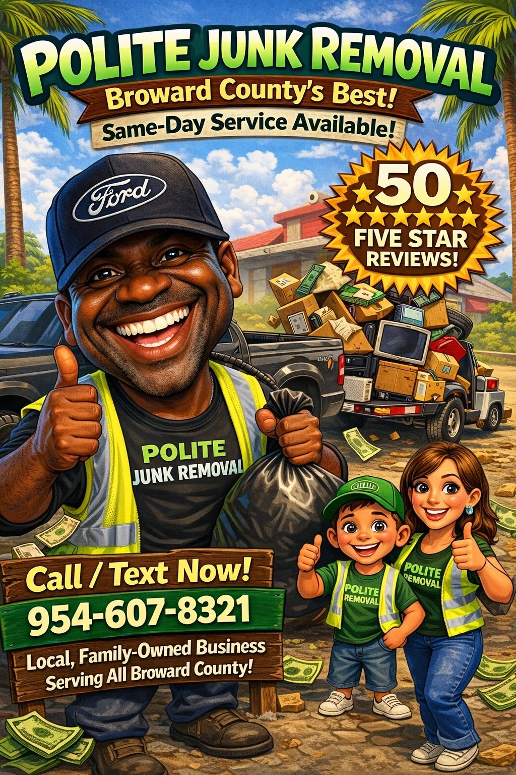 “Founded by Anthony Polite of Polite Junk Removal and Polite Dreams Entertainment, serving South Florida with 5-star rated junk removal services”.